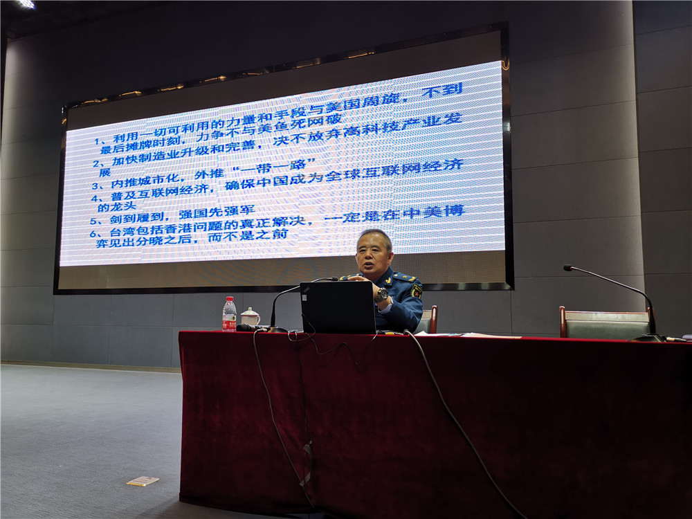 15日下午,乔良将军在公司一楼多功能厅做了《从百年大变局看中美贸易战》专题讲座,公司中高层领导及管理人员、部分员工骨干300余人聆听了报告。乔良将军从中美贸易战的深层次背景与本质、特朗普为何要发动贸易战、特朗普面对的悖论、中国的对策与路径四个方面进行了鞭辟入里、深入浅出的精彩讲授。通过对中美贸易战的热点分析中,使大家对中国改革开放40年的伟大成就、中华民族的伟大复兴及复兴之路的战略选择有了全面和深入的理解。一方面,提升了全员的民族自豪感和对中华民族伟大复兴的坚定信念;另一方面,坚定了公司开展民参军业务,顺应中国发展需求,实现军工报国的决心。