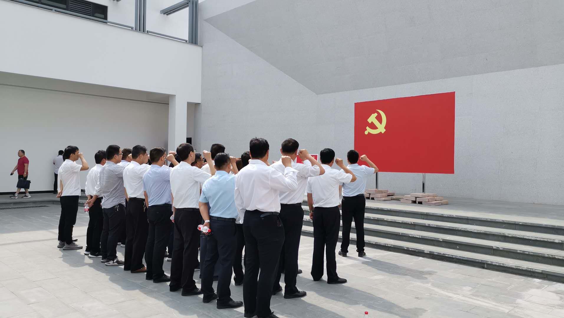 现场参观学习结束后,全体党员面对鲜红的党旗,集体宣誓,重温入党誓词,坚定理想信念,提升思想境界。