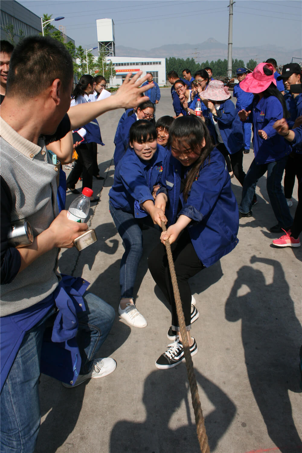 开幕式结束后,篮球、短跑、接力、拔河、跳绳、踢毽、乒乓球、羽毛球、象棋等13个项目在指定的比赛场地同时举行。篮球场上身穿蓝球衣朗坤公司队和红色球衣生产系统队的比赛精彩纷呈,扣人心弦。随着"砰"一声,发令枪响,接力运动员疾步如飞,向终点冲刺。观众“加油、加油”的助威呐喊声,将拔河比赛推向高潮。