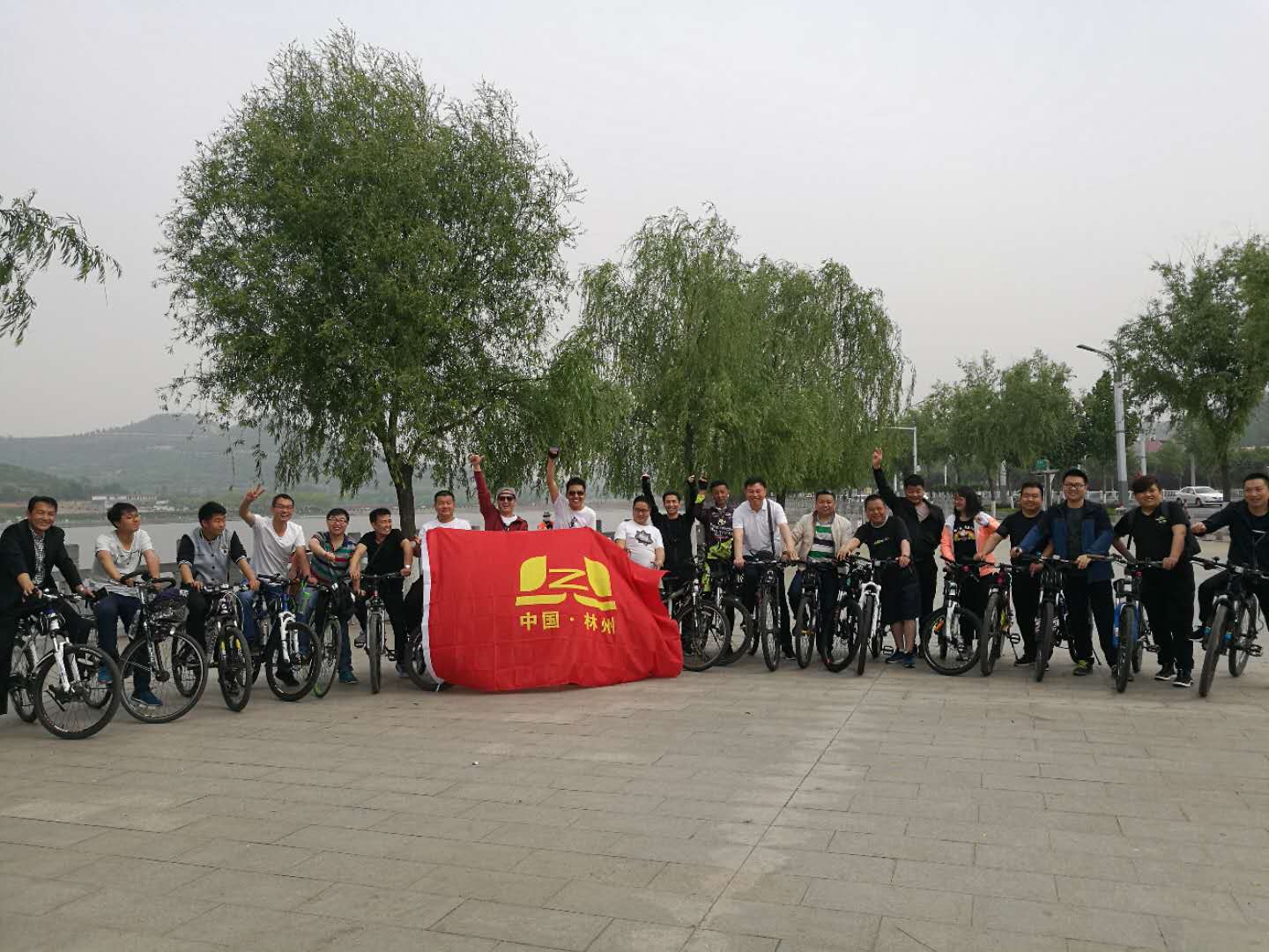 上午9时,所有参加骑行的人员在林州市龙湖集合完毕并合影留念后,随着郭钏总经理一声“出发”号令,骑行队伍以高昂的热情向目的地进发,沿途经过了采桑镇、东姚镇、临淇镇等乡镇的数个村庄,长途跋涉近50㎞后,于下午1时许到达目的地——万泉湖景区。经过休整,下午骑行队伍经临淇镇、桂林镇、合涧镇,于下午6时许安全返回至林州市区。