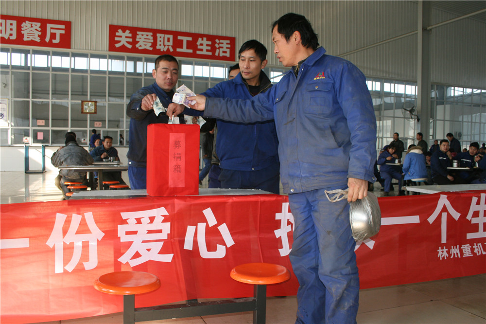 11日上午,公司工会立即发出募捐倡议书。下午二点在公司办公楼前举行了募捐仪式并现场募集。公司总经理郭钏代表公司捐款10000元,公司董事韩录云代表其家人捐款10000元,其他公司领导及机关部室、分子公司管理人员纷纷捐款,特别是与郭保红素不相识、在我公司施工的深圳市朗奥洁净科技股份有限公司捐款3000元,河南派普建工集团有限公司捐款1000元,供应商延津县热处理厂张东福看到募捐活动也捐款500元,短短不到半个小时募集捐款近4万元。更值得一提的是原林州重机集团员工张国华,也是肾病患者,曾经得到过林州重机捐款资助的他看到朋友圈的消息后,也委托朋友捐款10元,他说:我也是一名尿毒症患者,我也曾经得到过林州重机的捐助,现在我虽然还在治疗之中,但我也要尽我一点心意。多么朴实的话语,多么善良的员工,一方有难八方支援,真正体现出了我们林州重机是一个互助友爱的大家庭。12日中午,公司工会又在职工食堂举行第二次募捐活动,累计募捐善款 42337元。